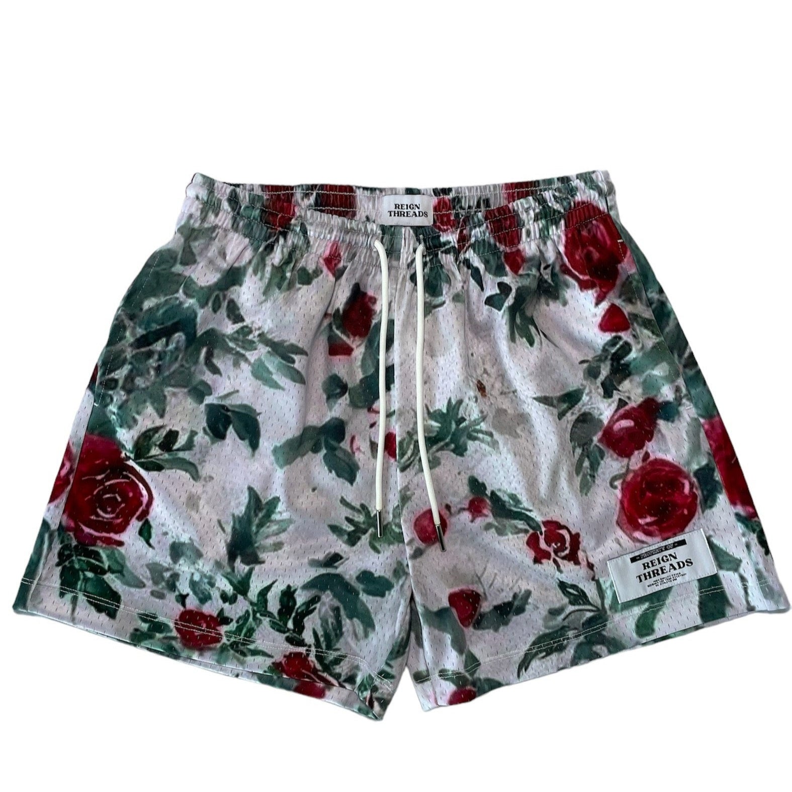 These red flower mesh shorts have a 5 inch inseam, providing optimum comfort and breathability for your workouts. Made from high-quality material, they are durable and perfect for any athletic activity. Stay cool and focused with these shorts, designed for maximum performance.