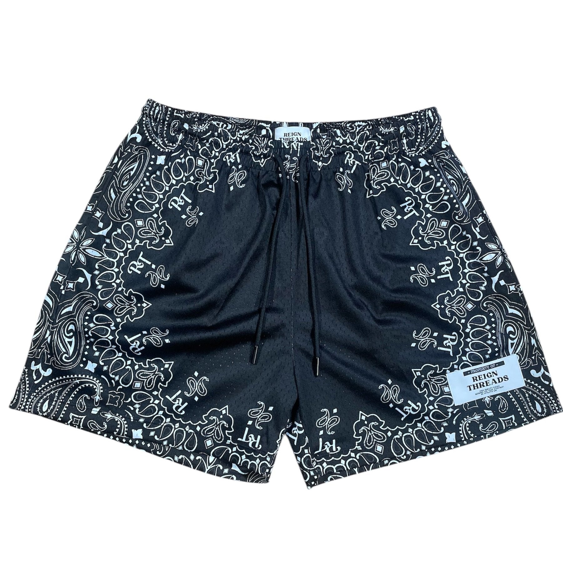 These black paisley mesh shorts have a 5 inch inseam, providing optimum comfort and breathability for your workouts. Made from high-quality material, they are durable and perfect for any athletic activity. Stay cool and focused with these shorts, designed for maximum performance.